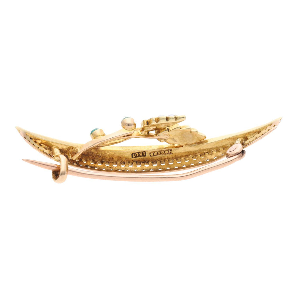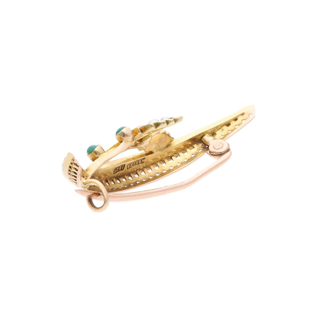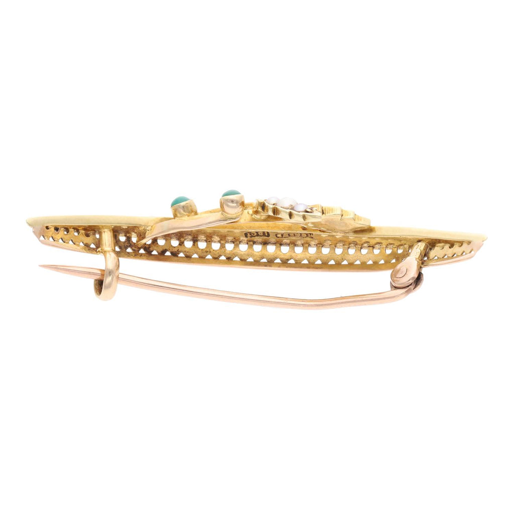 15ct Gold Turquoise and Pearl Brooch
