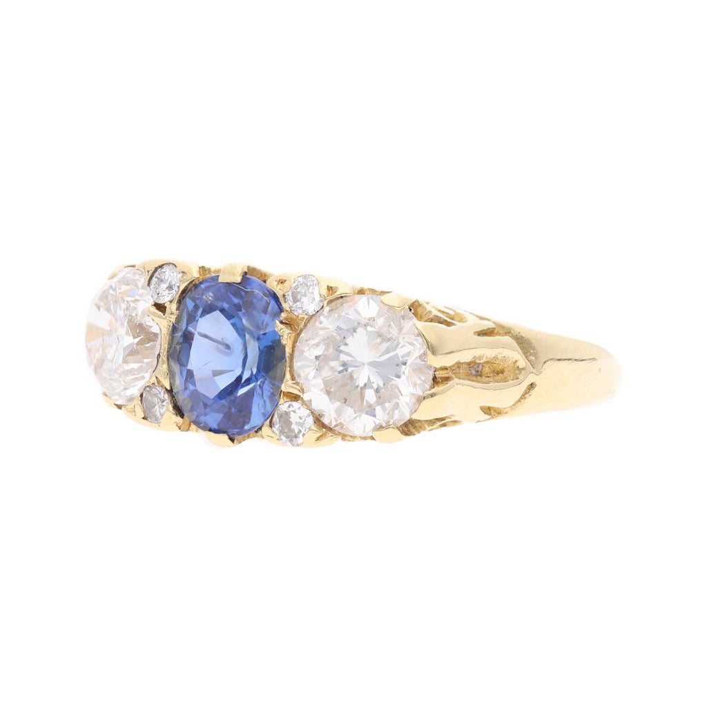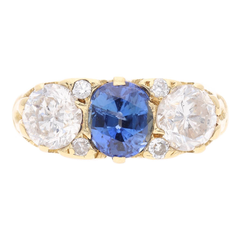 18ct Gold Sapphire and Diamond Carved Half Hoop Ring