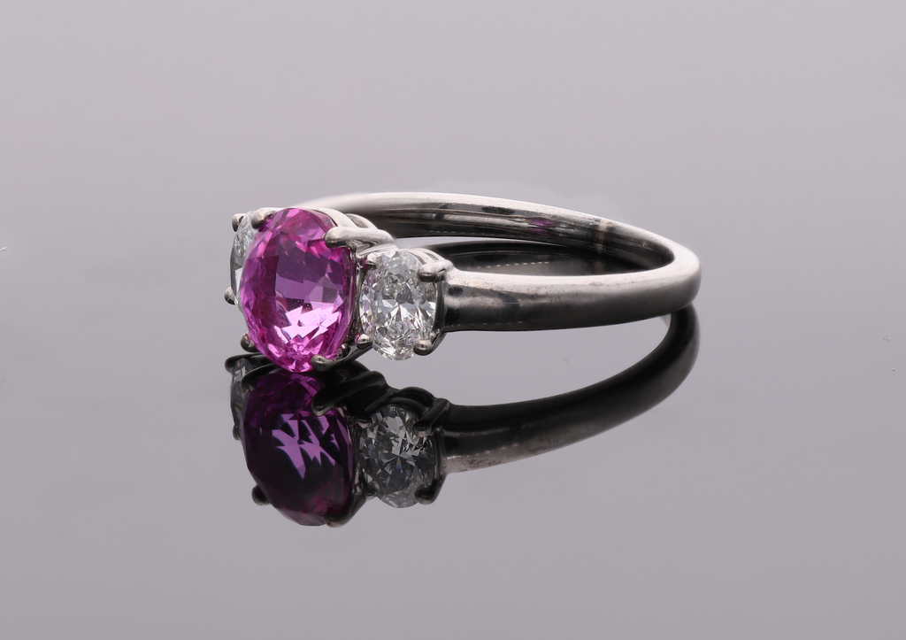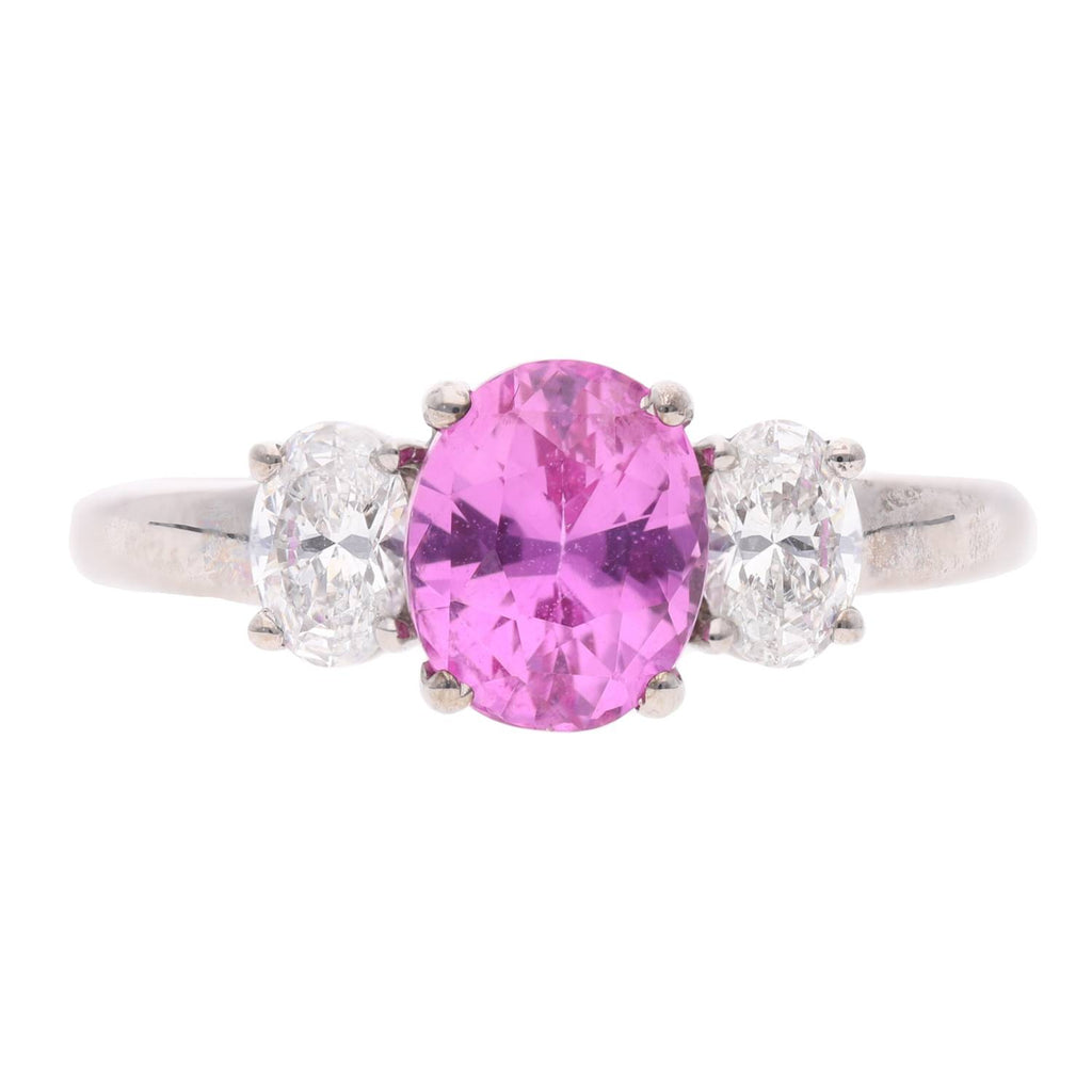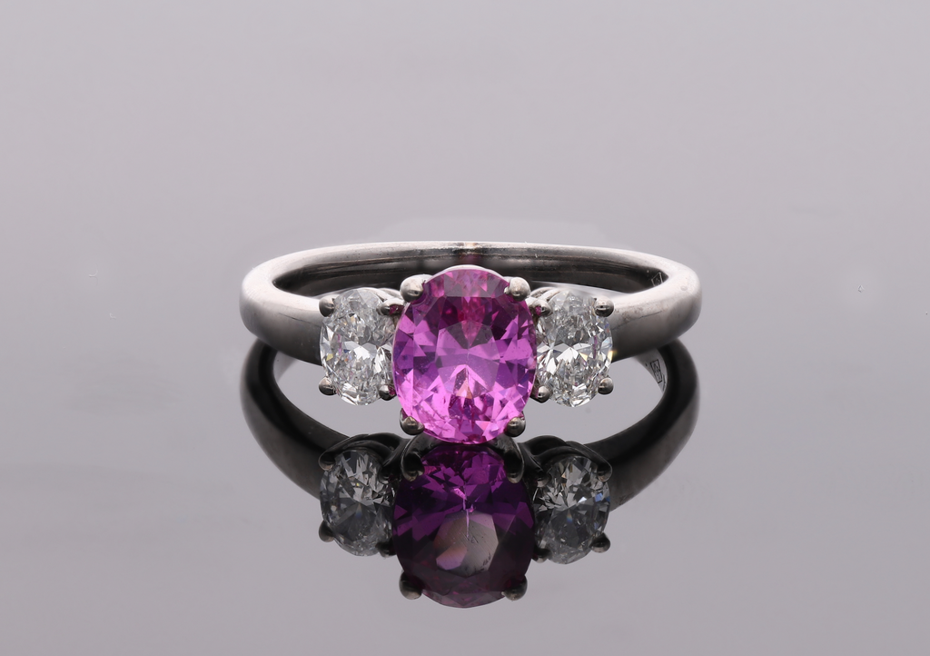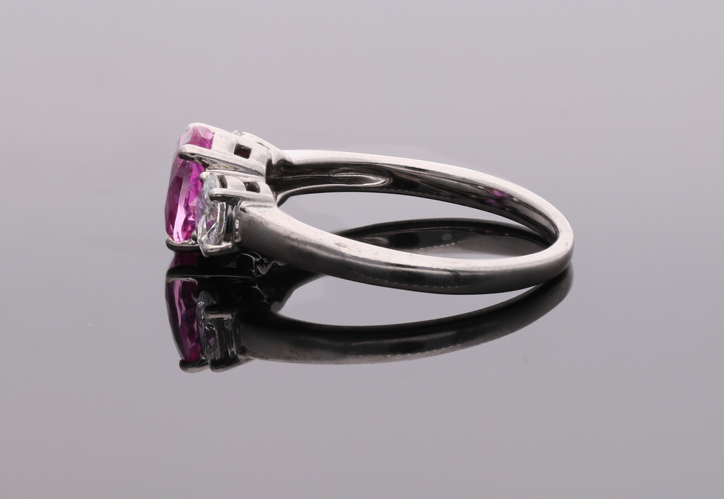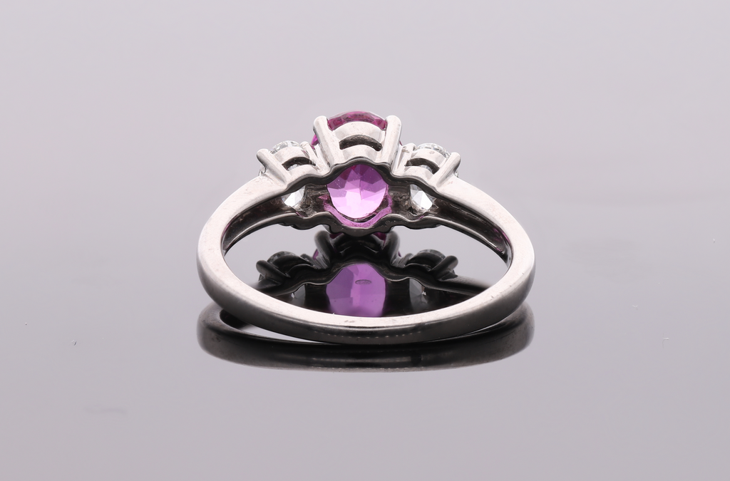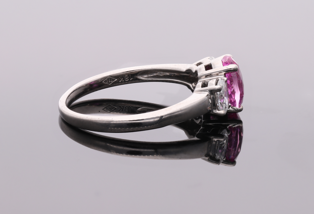 18ct White Gold Pink Sapphire and Diamond Three Stone Ring