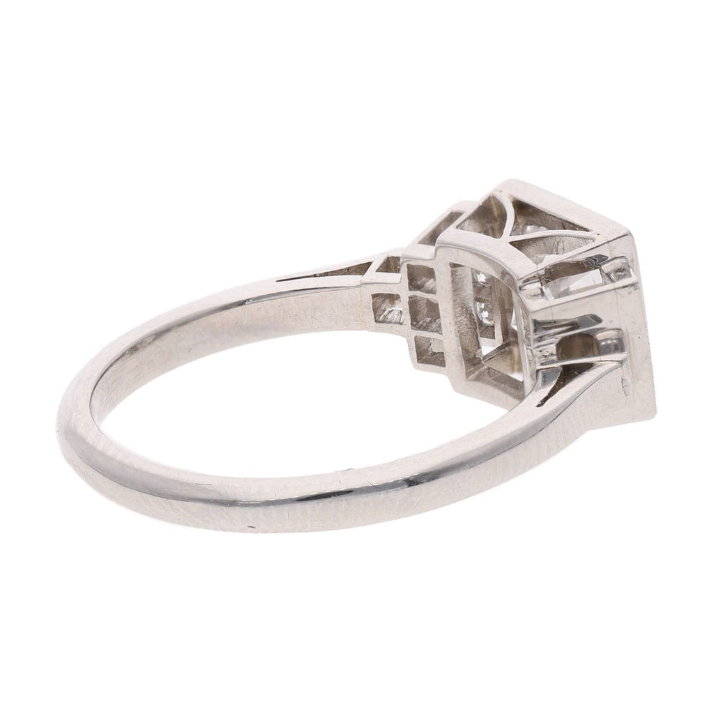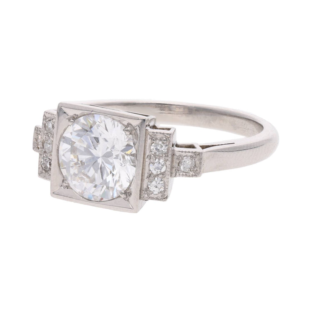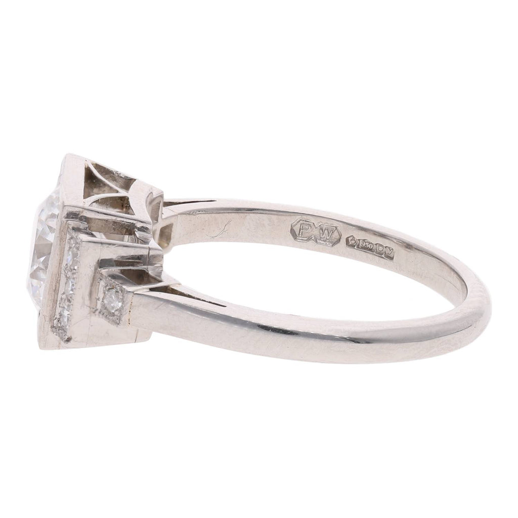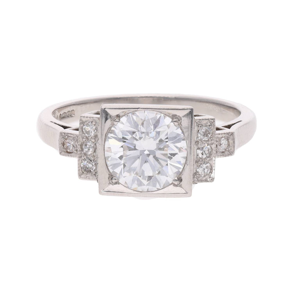 • The centre diamond is a beautiful 1.57ct ESI1 round brilliant cut diamond