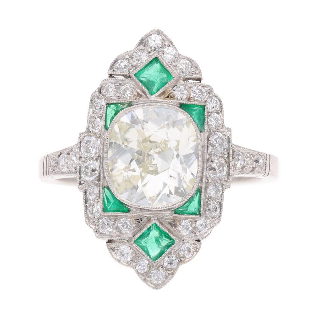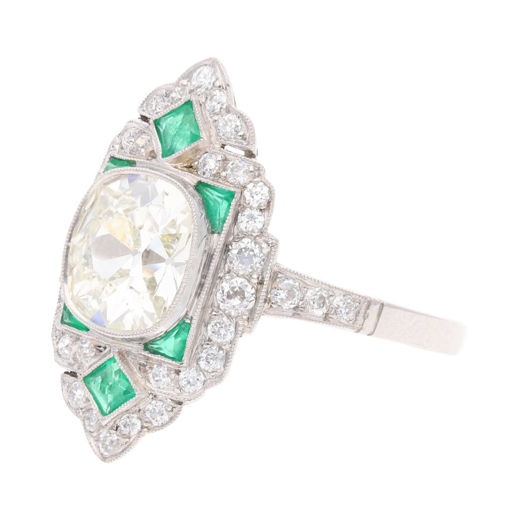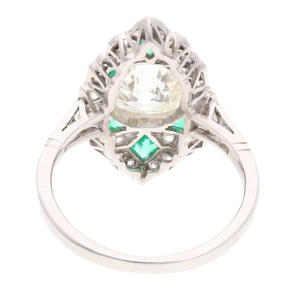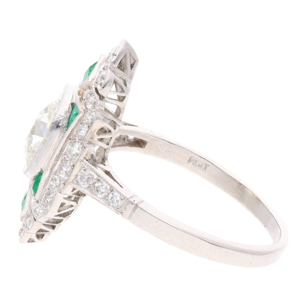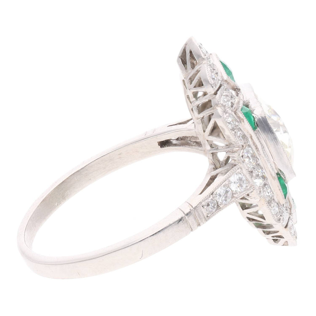 Platinum Emerald and Diamond Cluster Ring