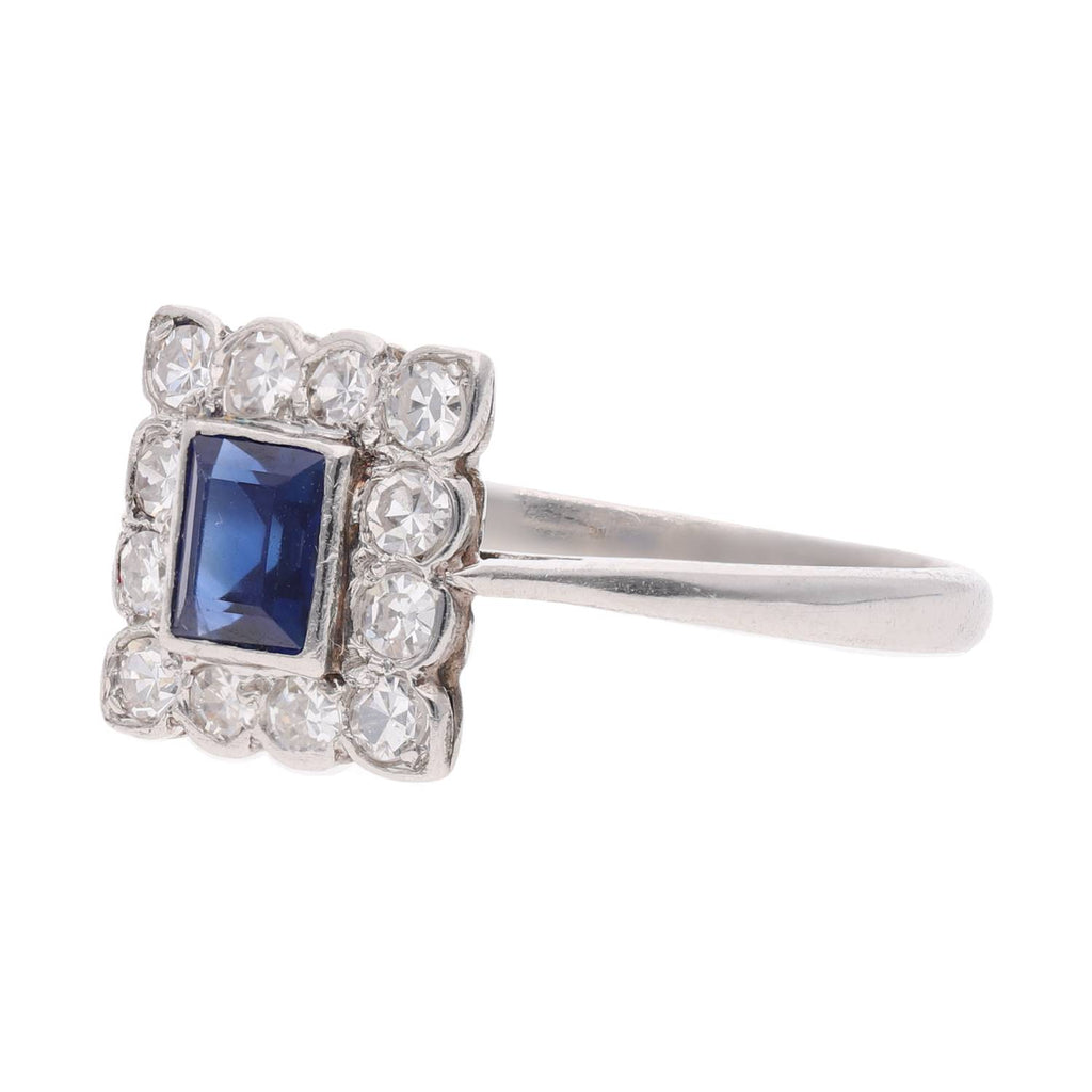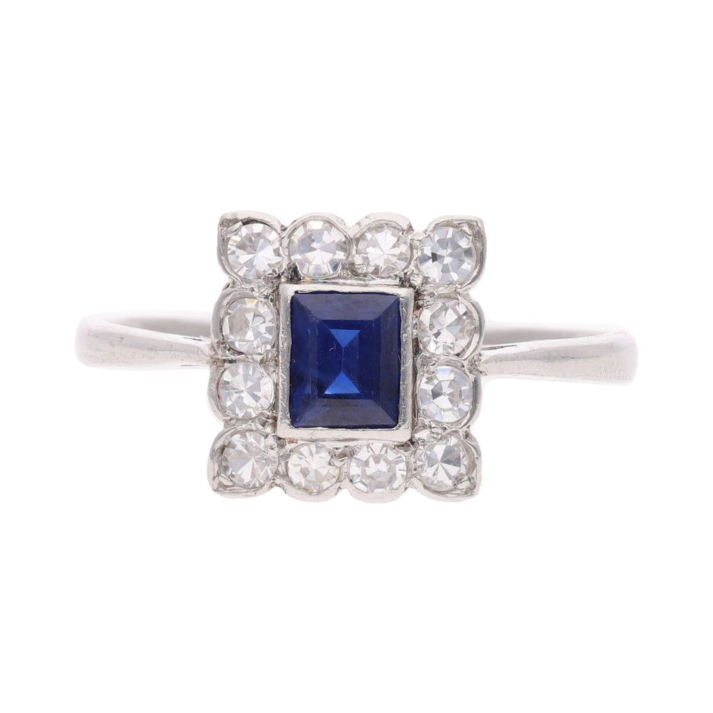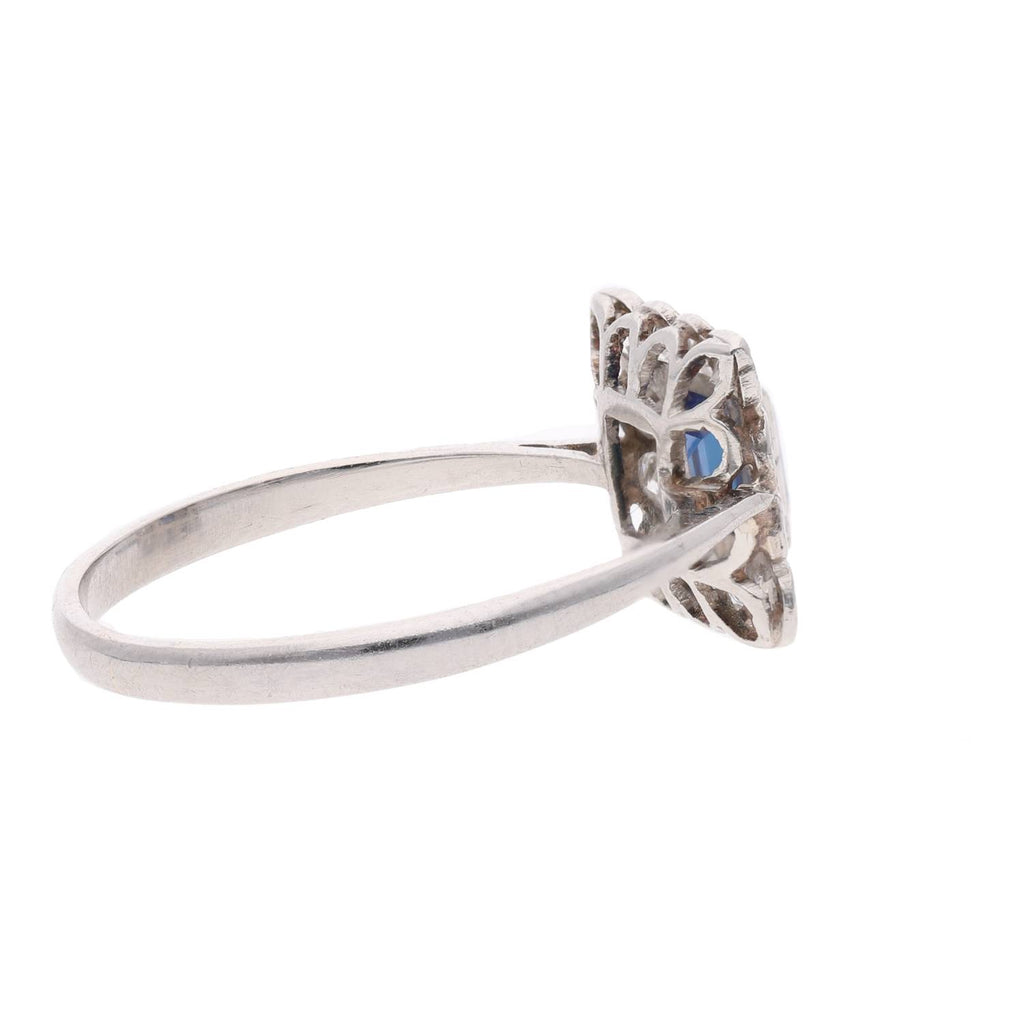 Platinum Sapphire and Diamond Cluster Ring
