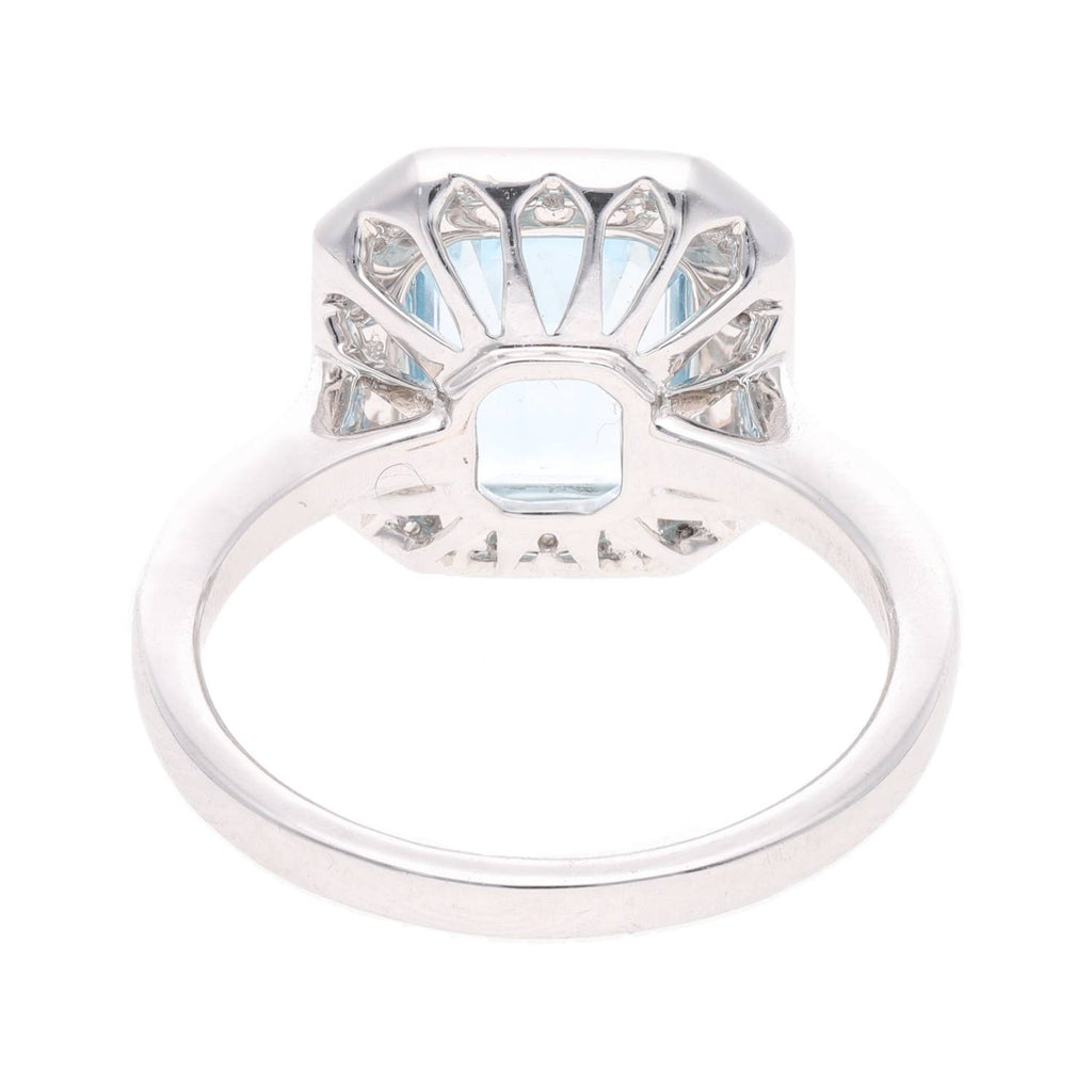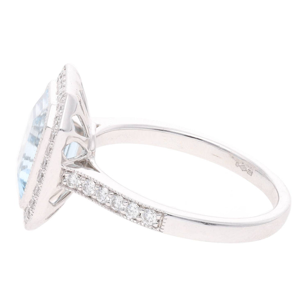 Platinum Aquamarine and Diamond Cluster Ring with Diamond Shoulders