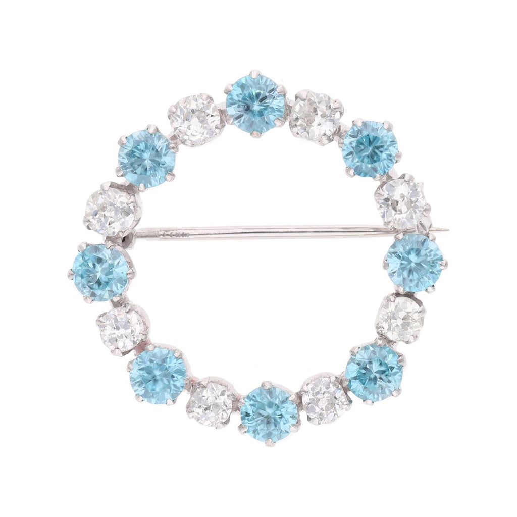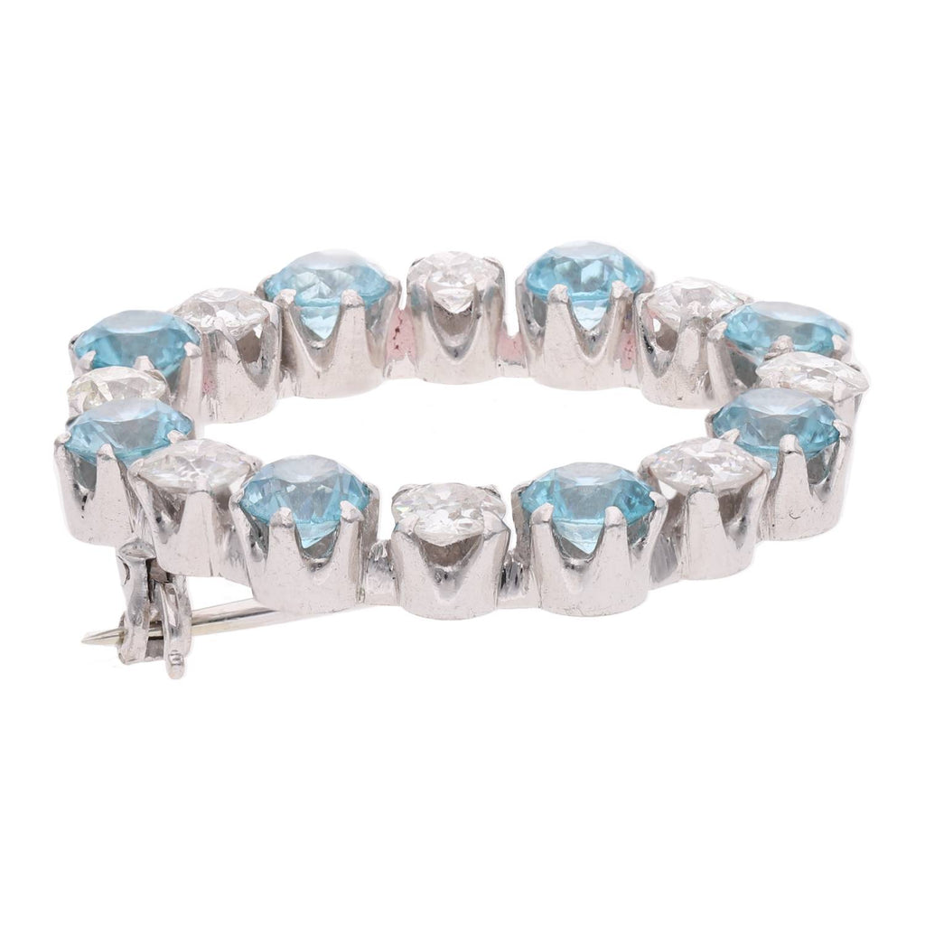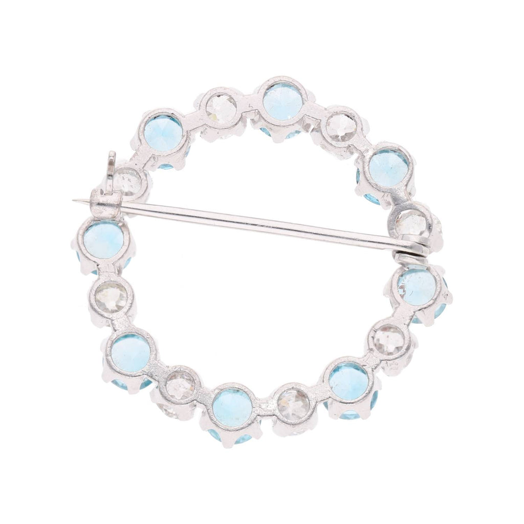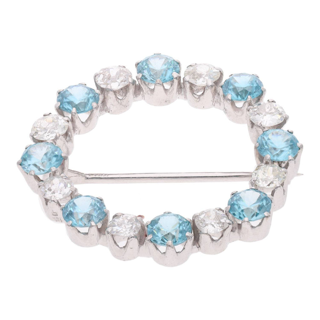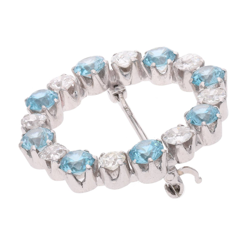 18ct White Gold Diamond and Blue Zircon Brooch