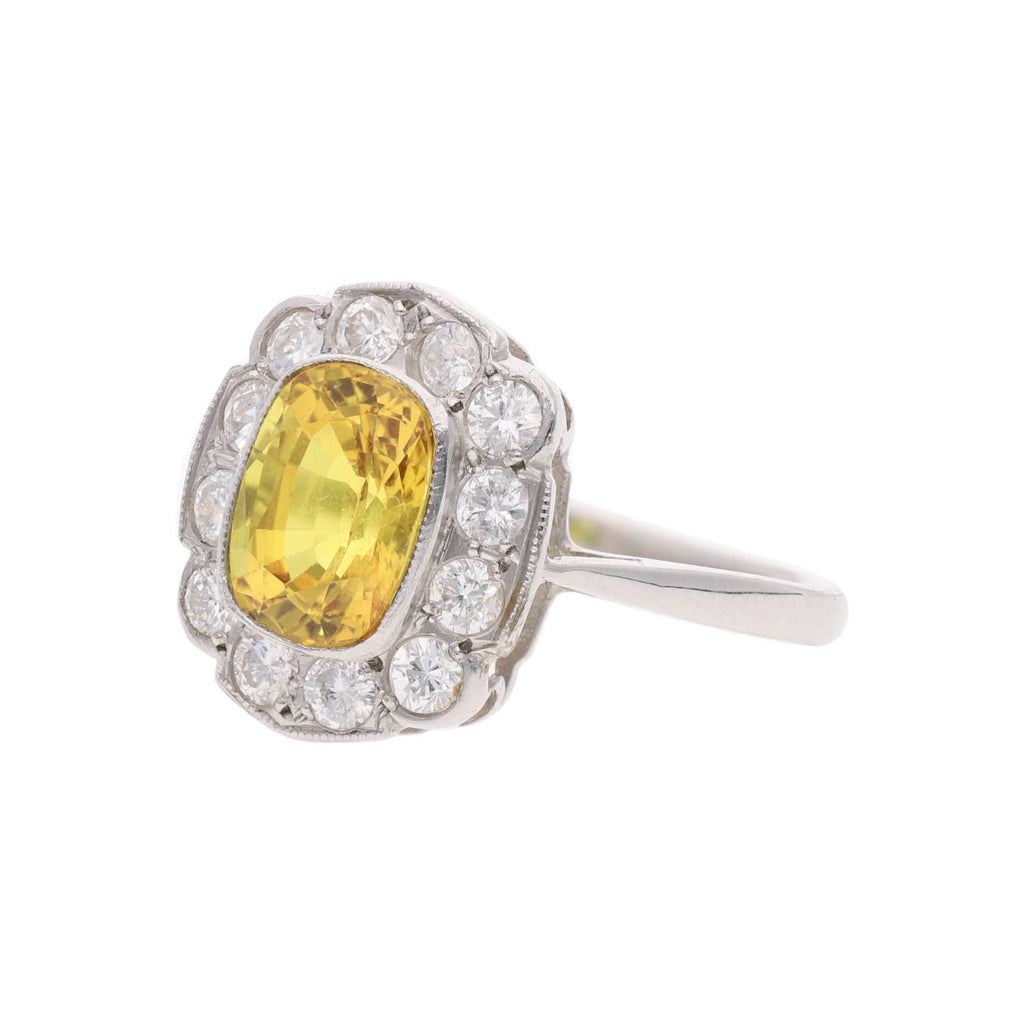 Platinum Yellow Sapphire and Diamond Cluster Ring