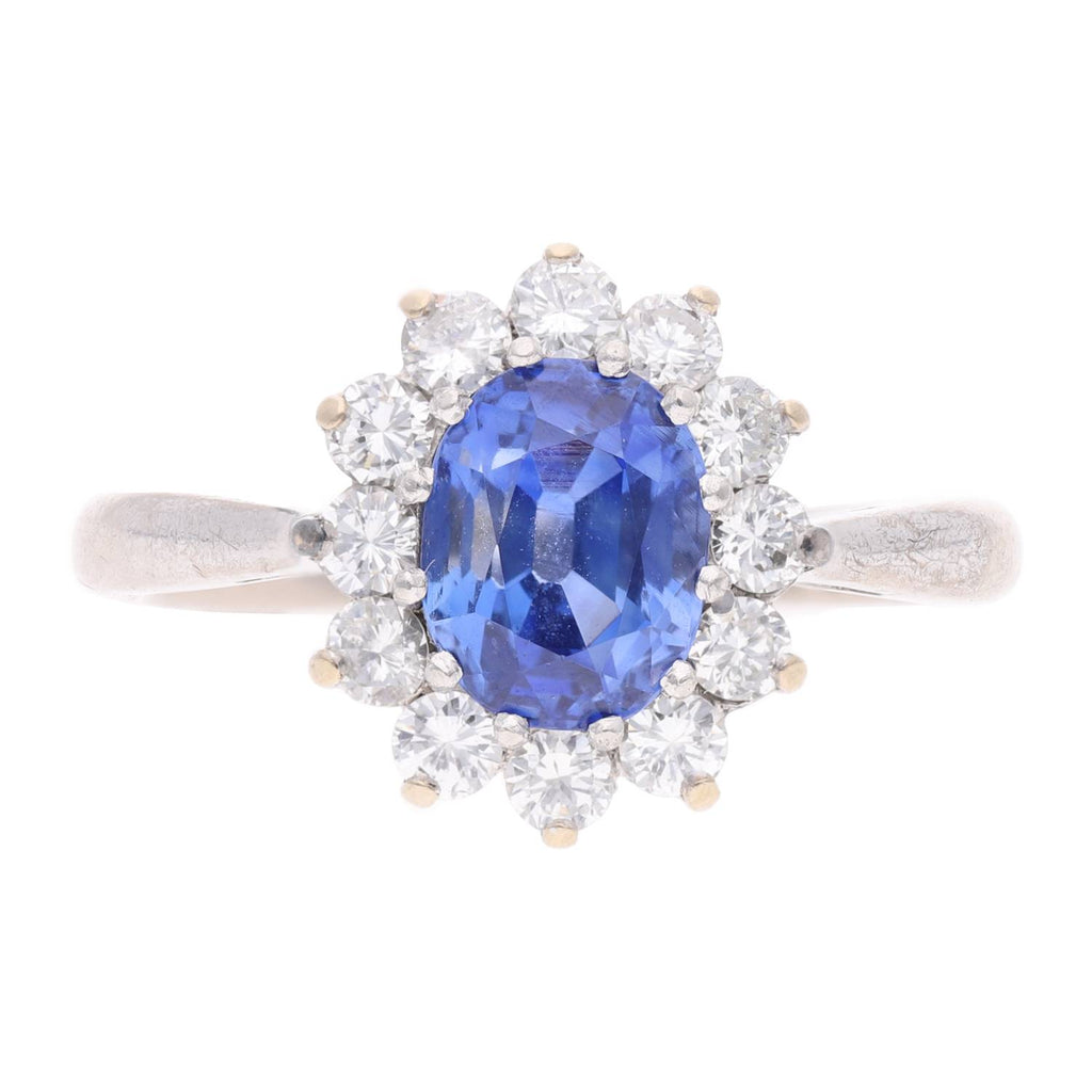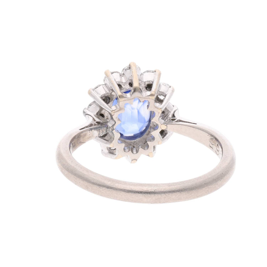 18ct White Gold and Platinum Sapphire and Diamond Cluster Ring