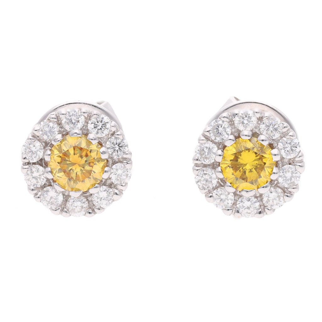 18ct White Gold Yellow and White Diamond Stud Earrings
