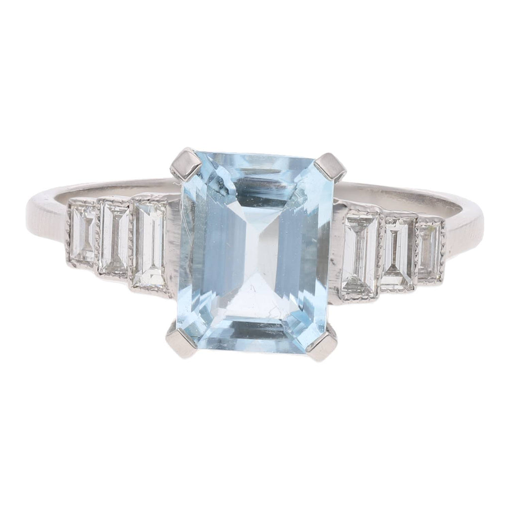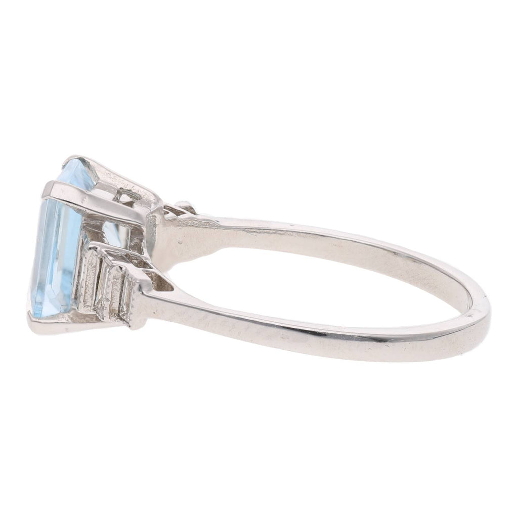 Platinum Aquamarine and Diamond Ring